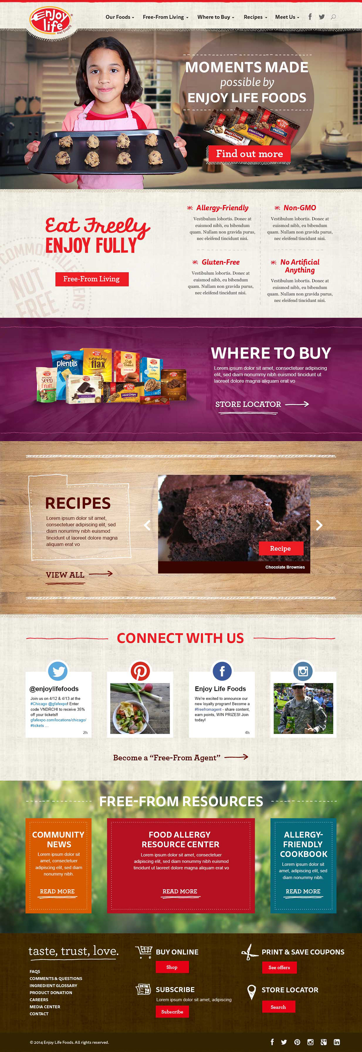 This responsive CPG website redesign features a full e-commerce component, along with a detailed product finder and rich social media integration.